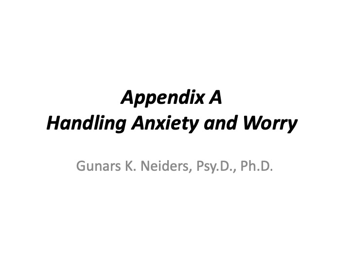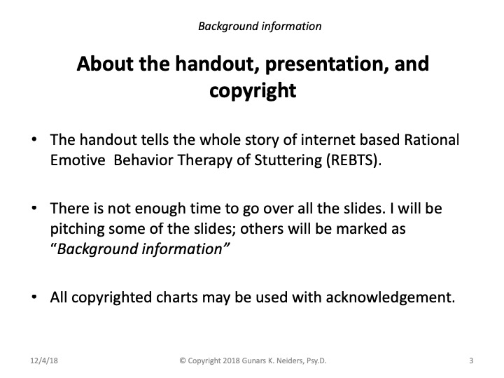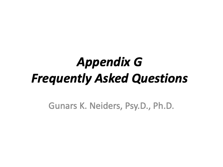 Original files of the presentation by Gunars K. Neiders, Psy.D., Ph.D and Heather Grossman, Ph.D., all rights reserved (c), 2018, can be found here.
